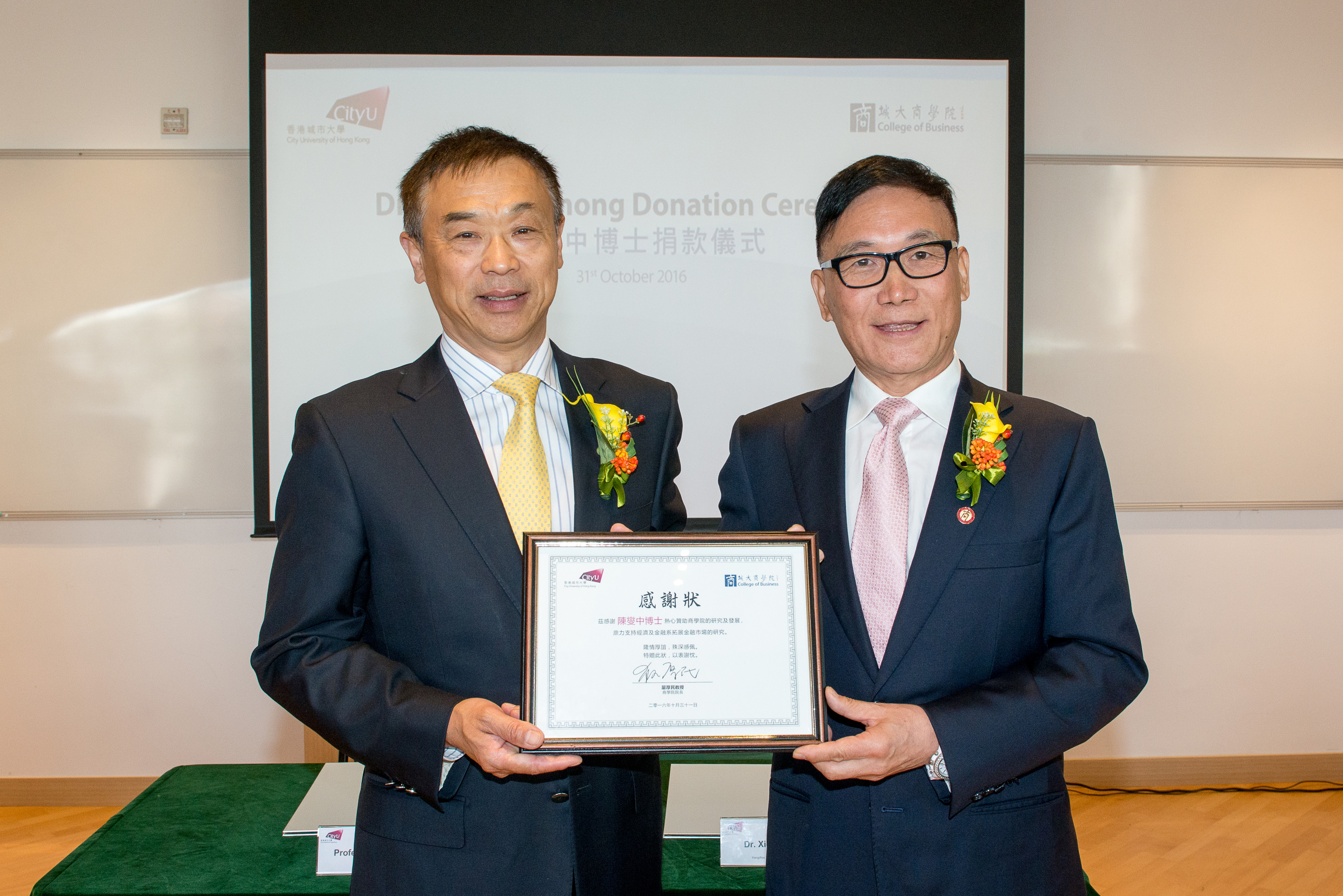 A donation ceremony was held in October 2016 to mark a generous endowment to the College by Dr Xiezhong Chen, Doctor of Business Administration (International) (IDBA) graduate 2016, and Chairman of Zhejiang Yamei Chengda Investment Management Co., Ltd, a financial consultancy company in Ziejiang Province, China.