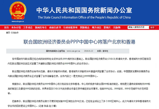City University of Hong Kong, Tsinghua Univeristy of Beijing, and the United Nations Economic Commission for Europe (UNECE) signed an agreement in Geneva on 20th January 2016 to advance Public Private Partnerships (PPPs) within China's One Belt One Road initiative.