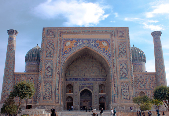 The Silk Road was also the route through which Mahayana Buddhism first entered China, witness the temple of the Buddhist protector Vaisravana at the ancient kingdom of Khotan, east of Samarkand, and the extraordinary cave art at Dunhuang.6 Later, Islam was also to spread eastwards, inspiring a host of beautiful buildings such as the Madrassah at Samarkand.