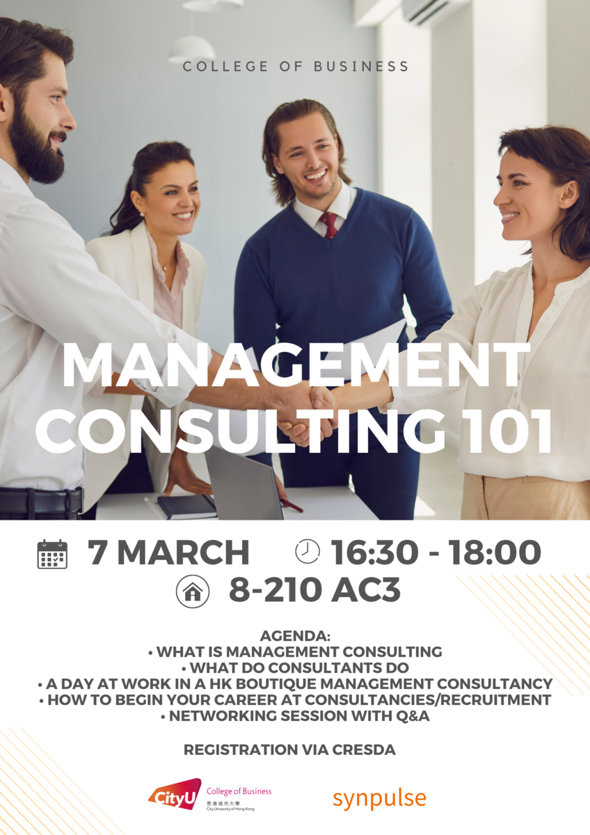 Date: 7 March 2024 (Thur) Time: 16:30 – 18:00 Venue: 8-210, Lau Ming Wai Academic Building (AC3) Target Students: All years and discipline Registration: via CRESDA