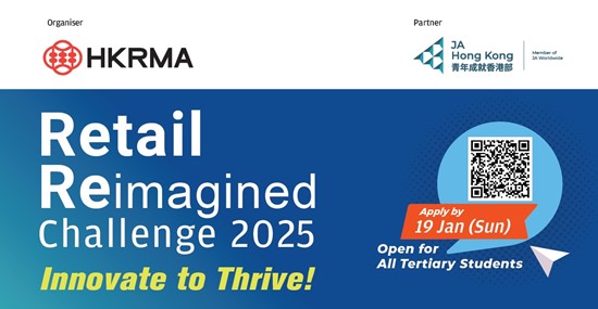 University students from ALL disciplines are cordially invited to join the “Retail Reimagined” Challenge 2025 organized by the Hong Kong Retail Management Association in partnership with leading brands in the industry. Through Leader Sharing and mentorship of experienced industry professionals, you will be empowered to discover the latest & upcoming trends in New Retail, unleash your creativity to redefine retail landscape & the future, and stretch yourselves at a hackathon to win cash prizes and networking opportunities. Sign up NOW! You are welcome to form a team of 5-7 members and submit your application at Retail Reimagined Challenge 2025 Sign up. The application deadline is 19 Jan 2025 (Sun), and participation confirmation will be sent on or before 14 Feb 2025 (Fri). You may also refer to the Challenge flyer for further details. All tertiary students are eligible to apply. For enquiries, please contact JAHK at 3426 3146 or email to rrc.ja@jahk.org. |