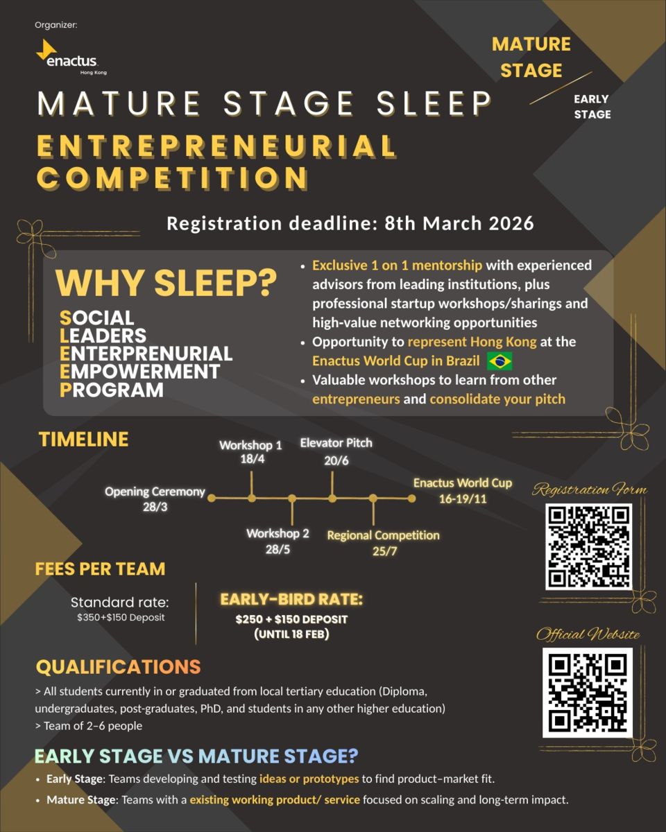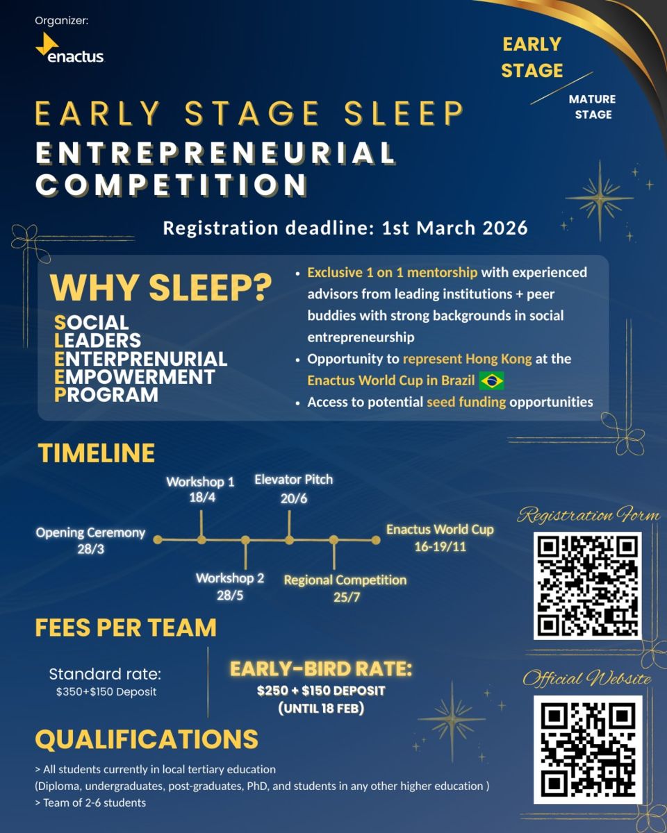 - Global Opportunity: Winning teams will represent Hong Kong at the Enactus World Cup in São Paulo, Brazil (Nov, 2026).