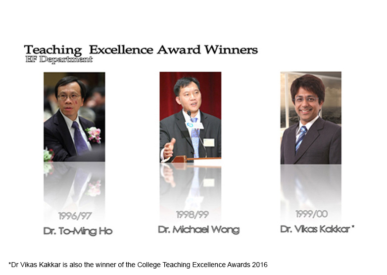 The University-wide Teaching Excellence Awards were introduced in CityU in 1993 to recognize and reward distinguished teachers. The selection process is comprehensive and rigorous. Only 4 to 6 teachers are given the Awards each year. Three members of the Department have won the Awards since 1993.
