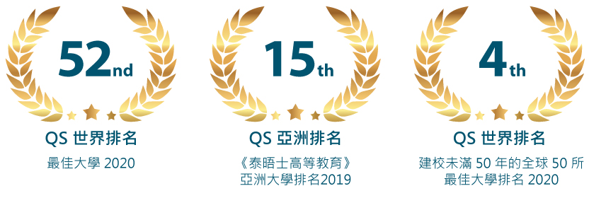 在國際高等教育資訊機構Quacquarelli Symonds(QS)公佈的2020世界最佳大學排名中城大位列第52位,同時在建校未滿50年的全球50所最佳大學中排第4位。