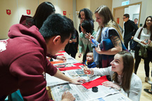 International students came to learn and experience traditional customs of Chinese New Year through different kinds of festive decorations and activities. Local students demonstrated Chinese calligraphy and taught others to write couplets – small red banners with hopes and wishes for the New Year. Participants also tried on the traditional Chinese costumes, and enjoyed a poon choi dinner – a communal dish served in a basin, comprising a variety of items such as vegetables, pigskin, fried fish maw, chicken, duck, and etc. This celebratory dish is always served on special occasions, particularly popular in villages in Hong Kong.