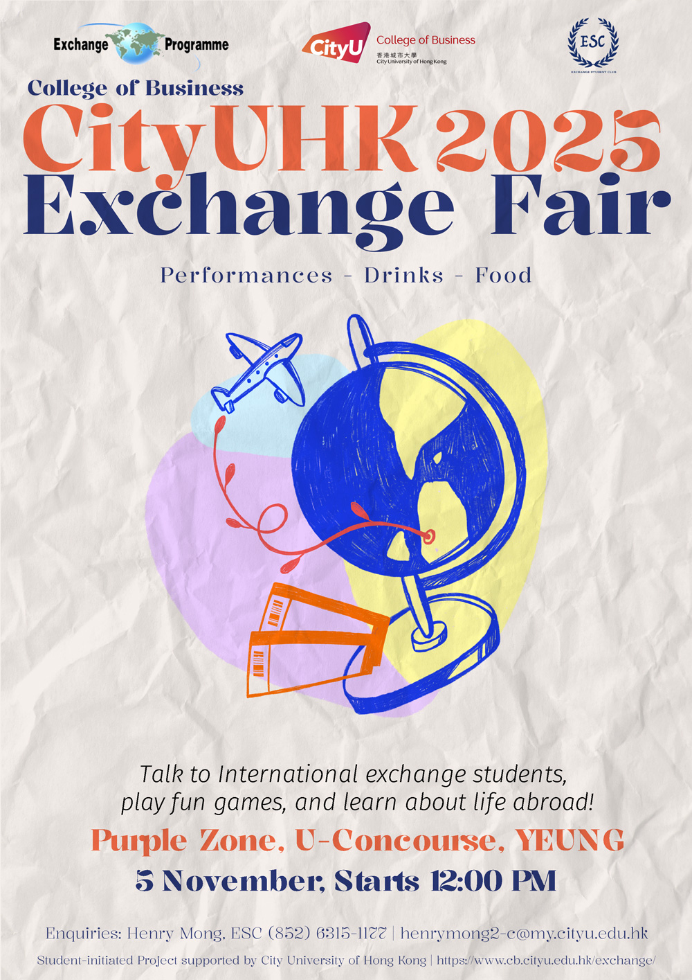The Exchange Student Club of the College of Business hosted the Exchange Fair on Wednesday, 5 November 2025. The event was assisted by this semester’s international exchange students, and through their efforts, they were able to express their own culture and their country’s charm to CityUHK students planning to go on exchange. There were also lots of local HK snacks for students to eat, a photobooth to create memories with friends, and a stage performance where CityUHK students were able to express themselves. We also had sharing sessions from two returning outbound exchange students, further showing how fun exchange can be!