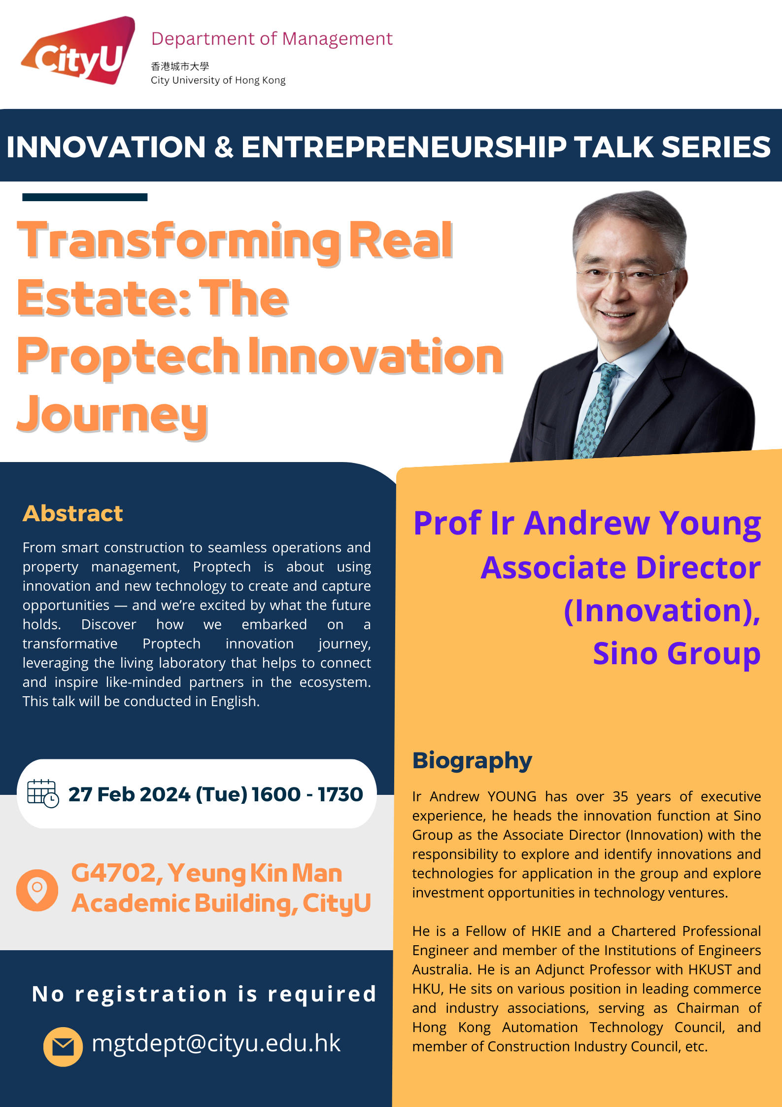 [MGT Talk Series 2023-24] Transforming Real Estate: The Proptech Innovation Journey by Prof. Ir. Andrew Young