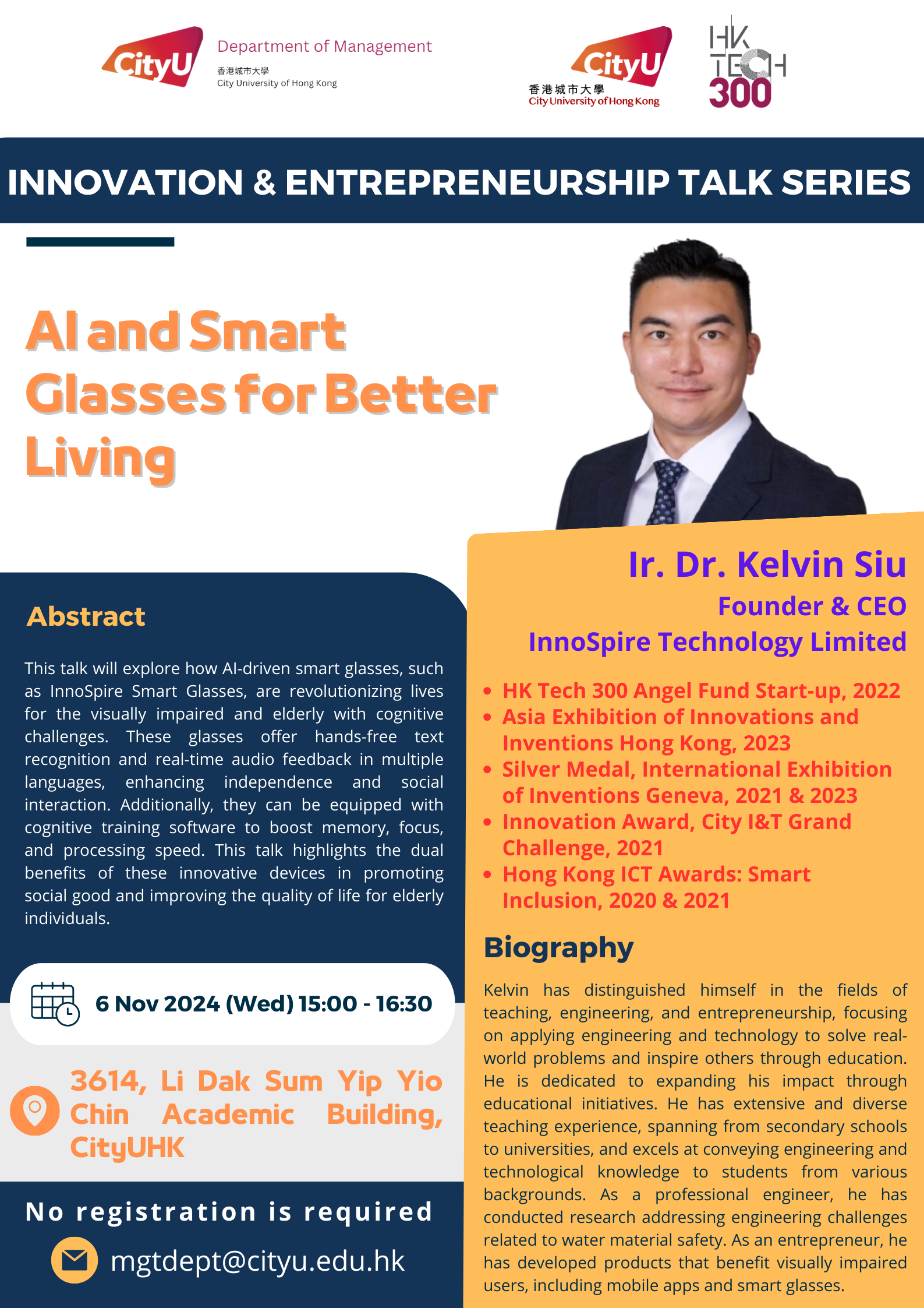 [MGT Talk Series 2024-25 (7)] AI and smart glasses for better living by Ir. Dr. Kelvin Siu
