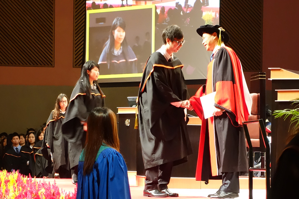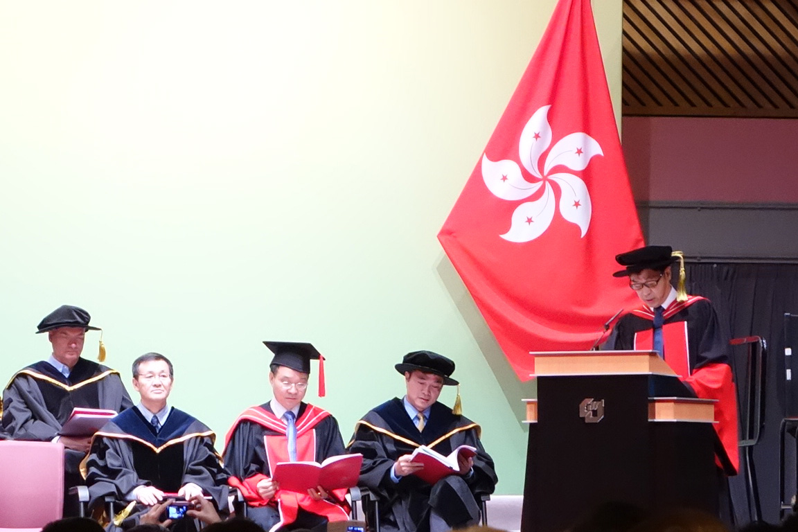The ceremonies were closed by speeches delivered by Graduate Representatives – Cheryl Cheng Kit-lai, BBA (Honours) in Finance, and Shuli Zhou, BBA (Honours) in Global Business Systems Management.