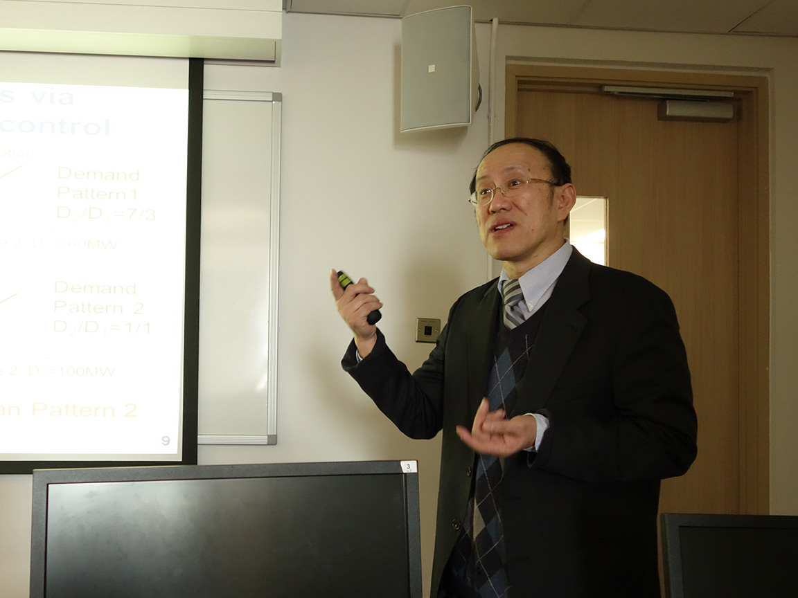 Prof. Xiaohong Guan, Cheung Kong Professor of Systems Engineering, Dean of School of Electronic and Information Engineering at Xi’an Jiaotong University, and Director of the Center for Intelligent and Networked Systems at Tsinghua University gave a lecture on low carbon energy production and efficient energy consumption at Academic 3 on 20th December 2013.