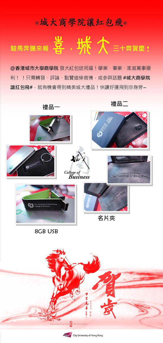The official College of Business Sina Weibo account (@香港城市大學商學院)’s fan base increased by nearly 50% over the course of the event. The Unit will continue to host light-hearted events on different social media platforms to connect students, alumni, and friends of CityU.