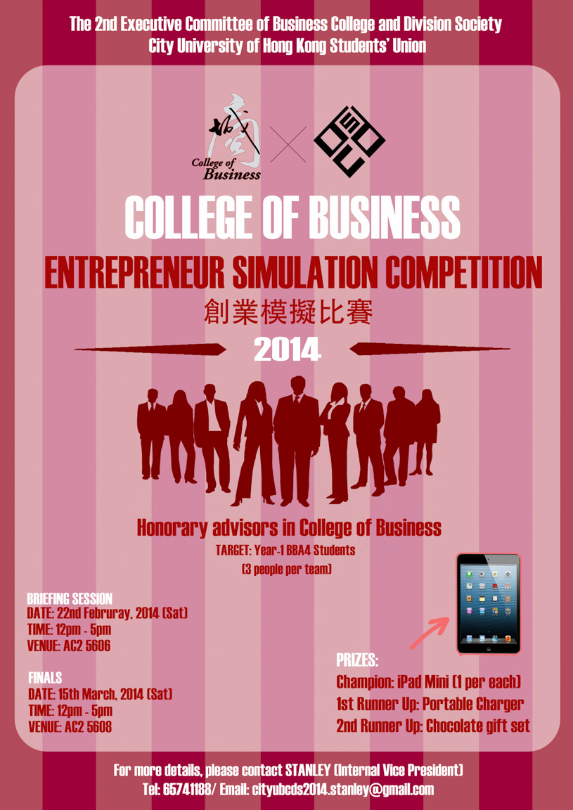 For more information about this competition, please email the Business College and Division Society of CityU Student’s Union at su-cbcds-c@my.cityu.edu.hk.