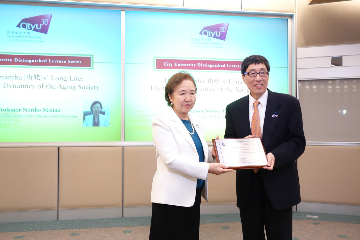 The lecture was ended with Prof Way Kuo awarding Prof Mizuta as Honorary Professor of the Department of Management, College of Business.