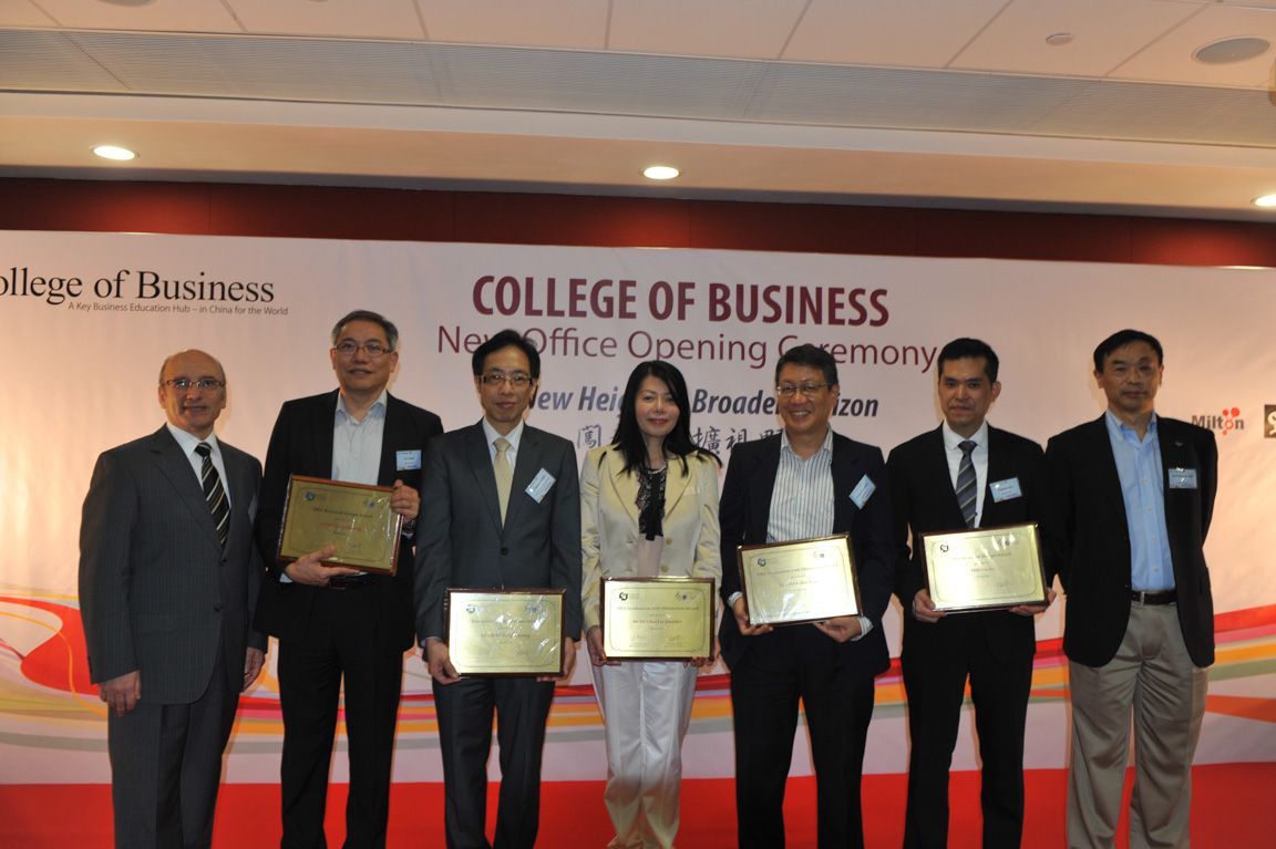 Following the opening ceremony held in the afternoon at the College’s new office on 12/F of AC3, the evening reception was opened by Prof Way Kou, President of CityU, and Prof Houmin Yan, Dean of the College. Over 100 attendants including honourable guest Dr Tony Chan Chun-tung, CityU Court member, Honorary Fellow (2011), and EMBA alumnus (Cohort 2004), CityU Management Team Prof Horace Ip, Vice-President (Student Affairs), Dr Gang Hao, Associate Vice President (Development), Prof Matthew Lee, Director of Communications & Public Relations Office, Prof Feng Lin, Acting Dean of the School of Law, CB Management Team, Heads of Departments, faculty members, students, and alumni were present.