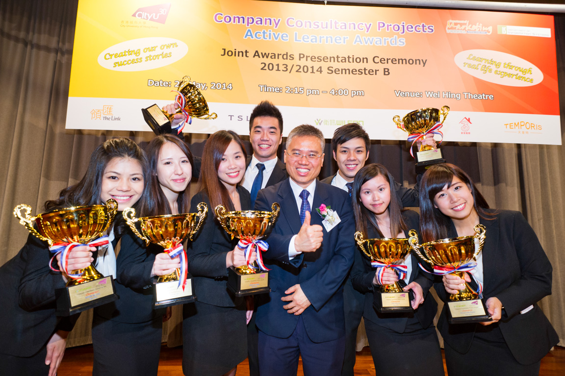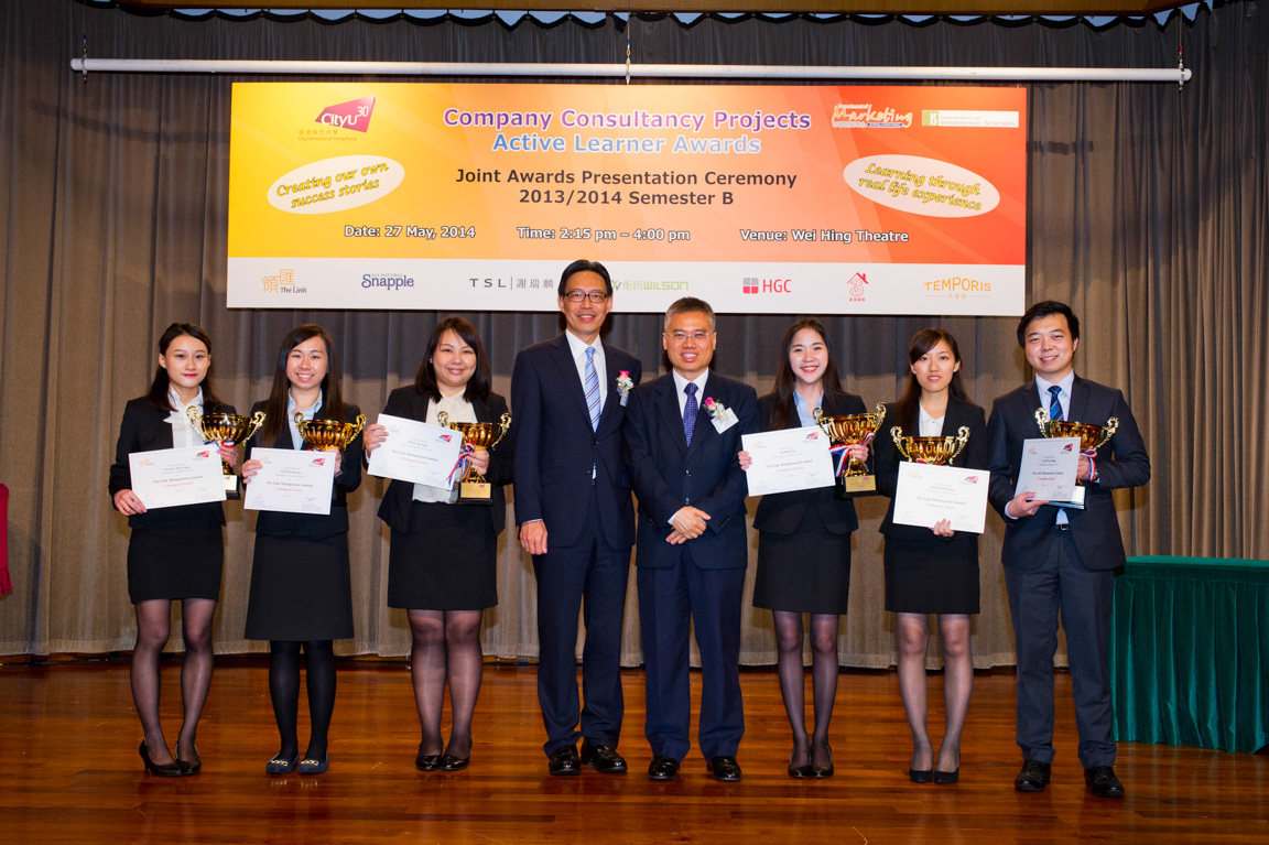The ceremony titled Joint Awards Presentation 2013/2014 Semester B for Company Consultancy Projects and Active Learner Awards was opened by Prof Arthur Ellis, Provost of CityU. Around 140 attendants including guests, company representatives, faculty members, and students joined the ceremony.