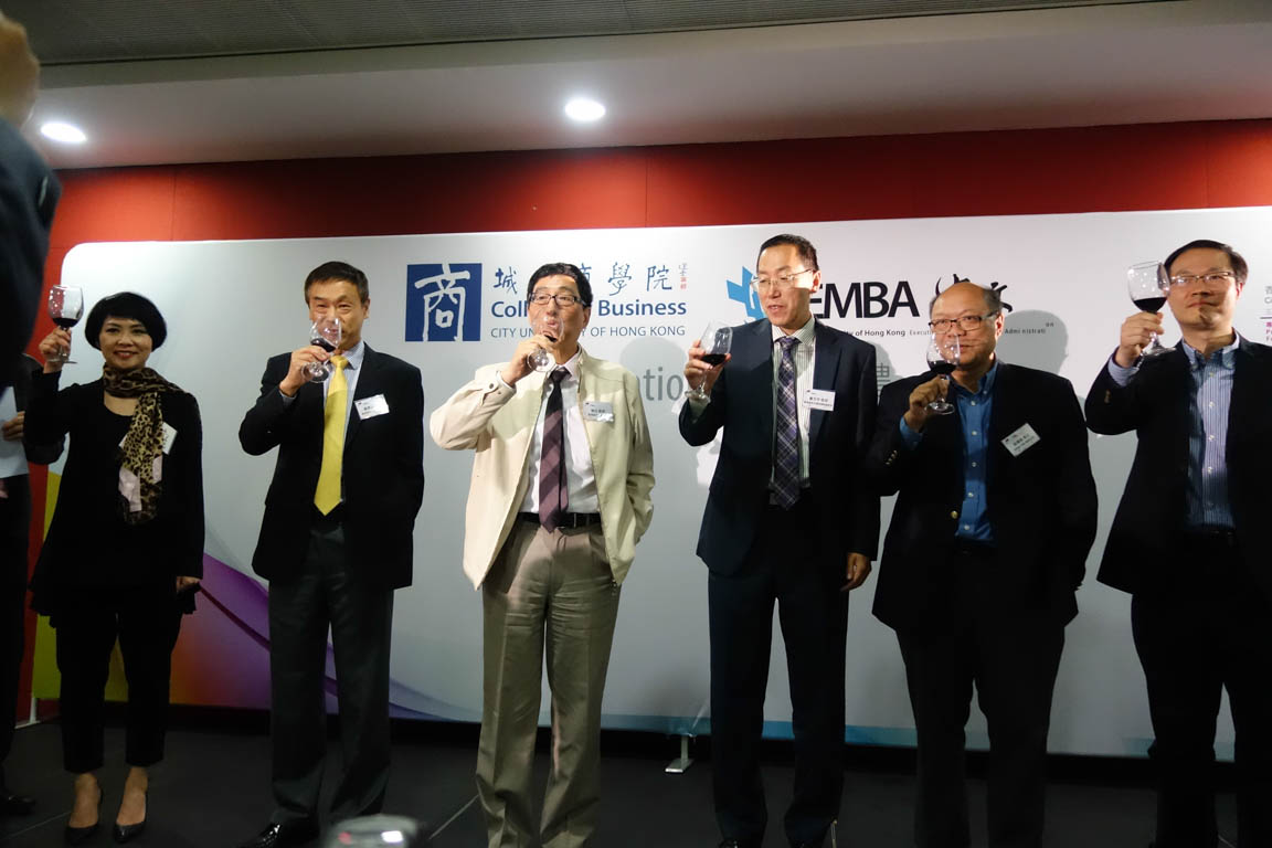 A welcoming dinner cum opening ceremony was held at the Senate Room of Academic 3. Prof Way Kou, President of CityU, accompanied by Prof Houmin Yan, Dean of the College, Prof Dou, and Dr John Leung, EMBA programme Director, gave a toast to all the students and guests, and wished the new cohort a fruitful learning experience. Each student was invited on stage to introduce themselves and shared their learning objectives.