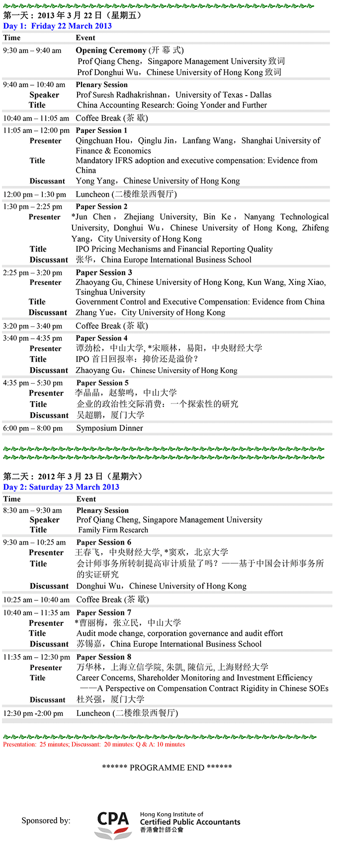 Programme Rundown
