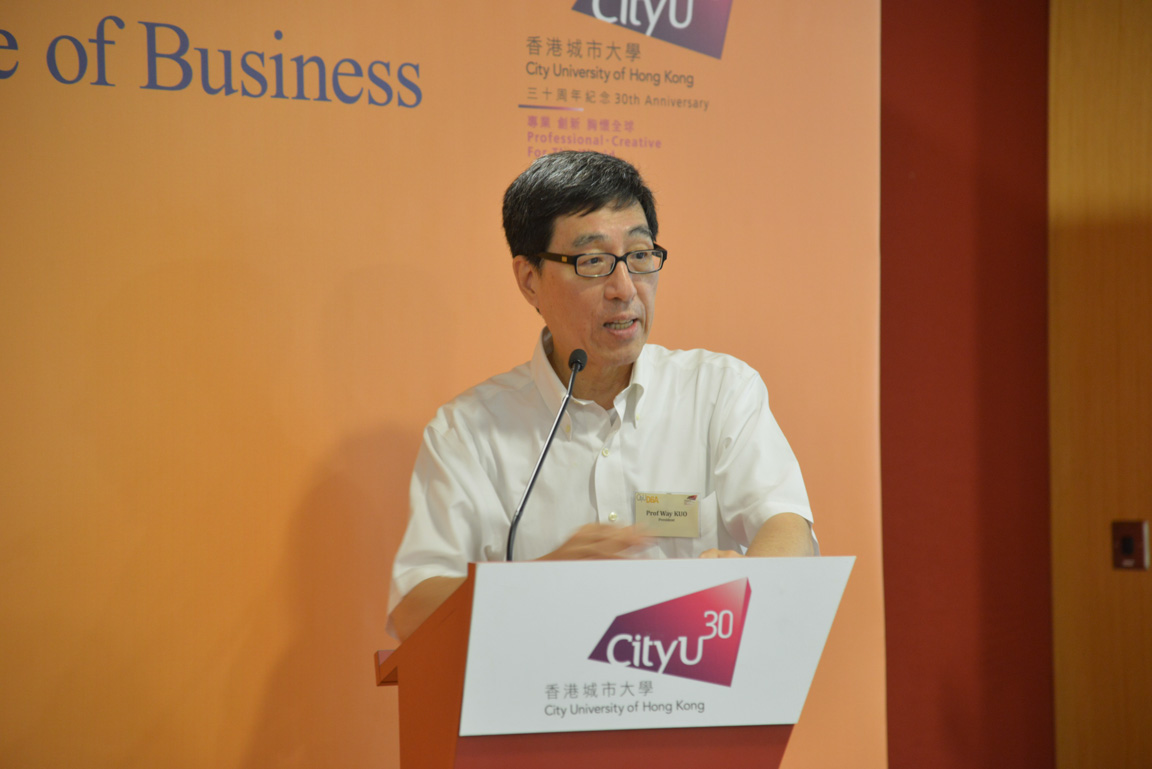 Prof Way Kuo, President of CityU, joined Prof Houmin Yan, Dean of the College, and Prof Frank Chen, Head of the Department of Management Sciences, in welcoming guests during the cocktail reception. The event attracted over 60 students and alumni.