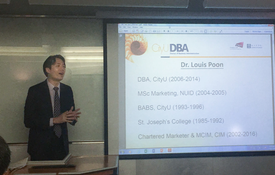 Dr Louis Poon, graduate of the College of Business Doctor of Business Administration (DBA) programme, presentated on 19th April in a seminar themed RMB Internationalisation Impact to Hong Kong and the Investment Outlook of 2016.