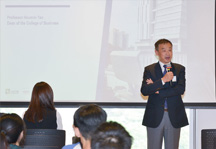 The College also hosted a special session named “Business and Education Trends of the 21st Century”. Prof Houmin Yan, Dean of the College, and other faculty members shared with the audience some popular business topics and reforms in teaching curriculum. In the session, Ms Elsa Kwok, Director of KWK Asia Limited and current learning partner of the CityU EMBA programme, gave a keynote speech of her insights on the changing business industry.
