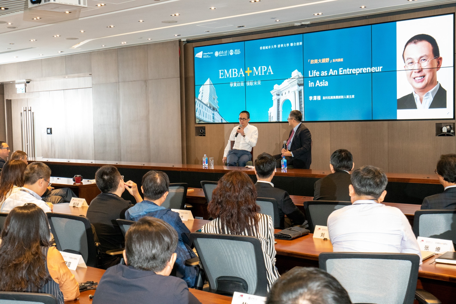 The event was part of “Politics and Business Panorama”(政商大視野), a seminar series organised by the EMBA+MPA programme, a double master’s programme jointly developed by the CityU’s College of Business and Tsinghua University’s School of Public Policy and Administration. Distinguished speakers are invited to share insights on a wide range of topics in business and political context, with a focus on the Chinese economy.