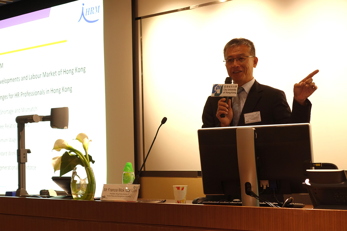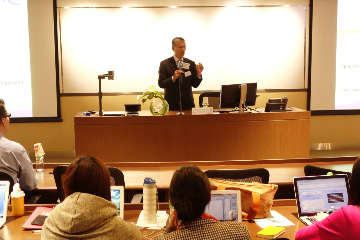 Mr. MOK Gar-lon, Francis (FIHRM), President of the Hong Kong Institute of Human Resource Management (HKIHRM) was guest speaker at the Professional Forum organized by the MBA programme held in Academic 3 on the evening of 2nd December.