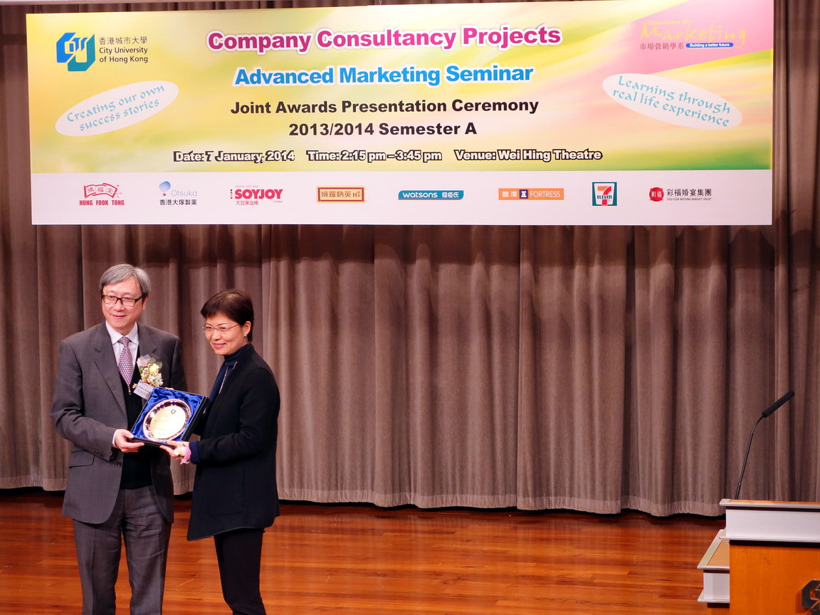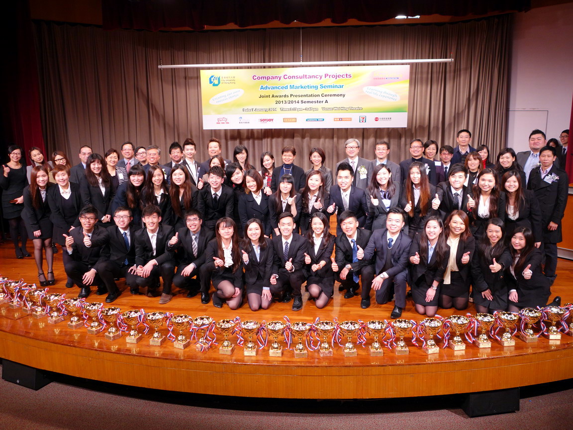 The Department of Marketing held a Joint Awards Presentation Ceremony, recognizing outstanding Company Consultancy Projects produced by BBA Marketing students in Semester A of 2013-2014 at Wei Hing Theatre on 7th January.