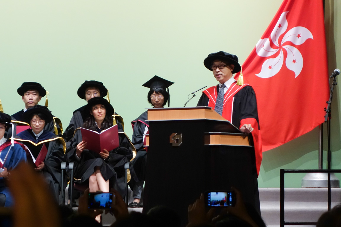 The ceremonies were closed by speeches delivered by Graduate Representatives: Dora Huang Chia-yun, BBA (Honours) in Finance, Kassy Wong Ka-chi, BBA (Honours) in Service Operations Management, Julia Tsoi Hoi-ching, BBA (Honours) in Global Business Systems Management, and Grace Lin weiran, BBA (Honours) in Accountancy.